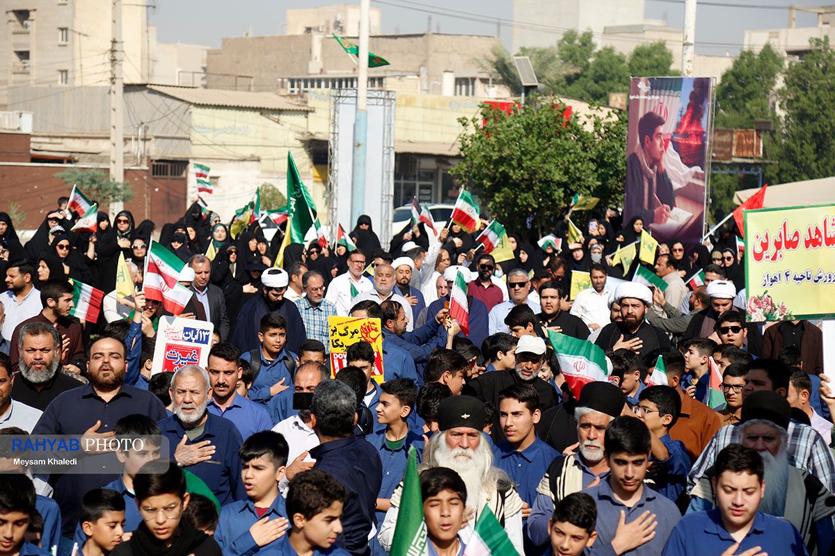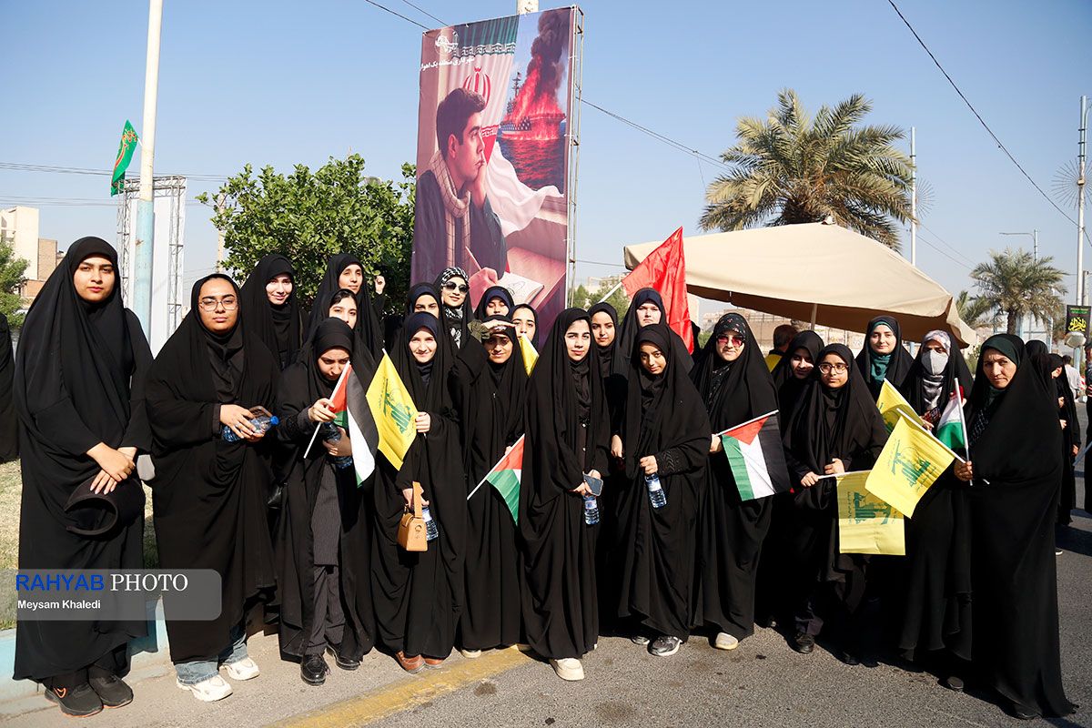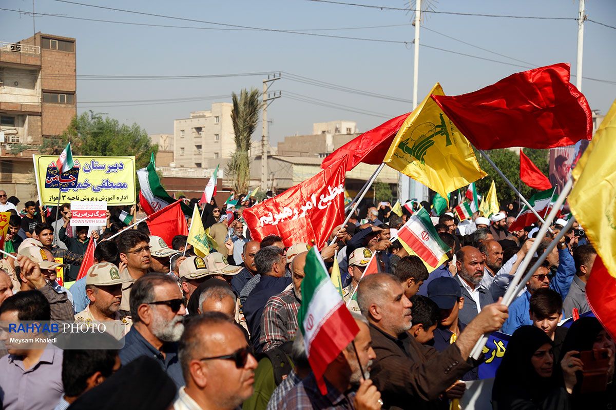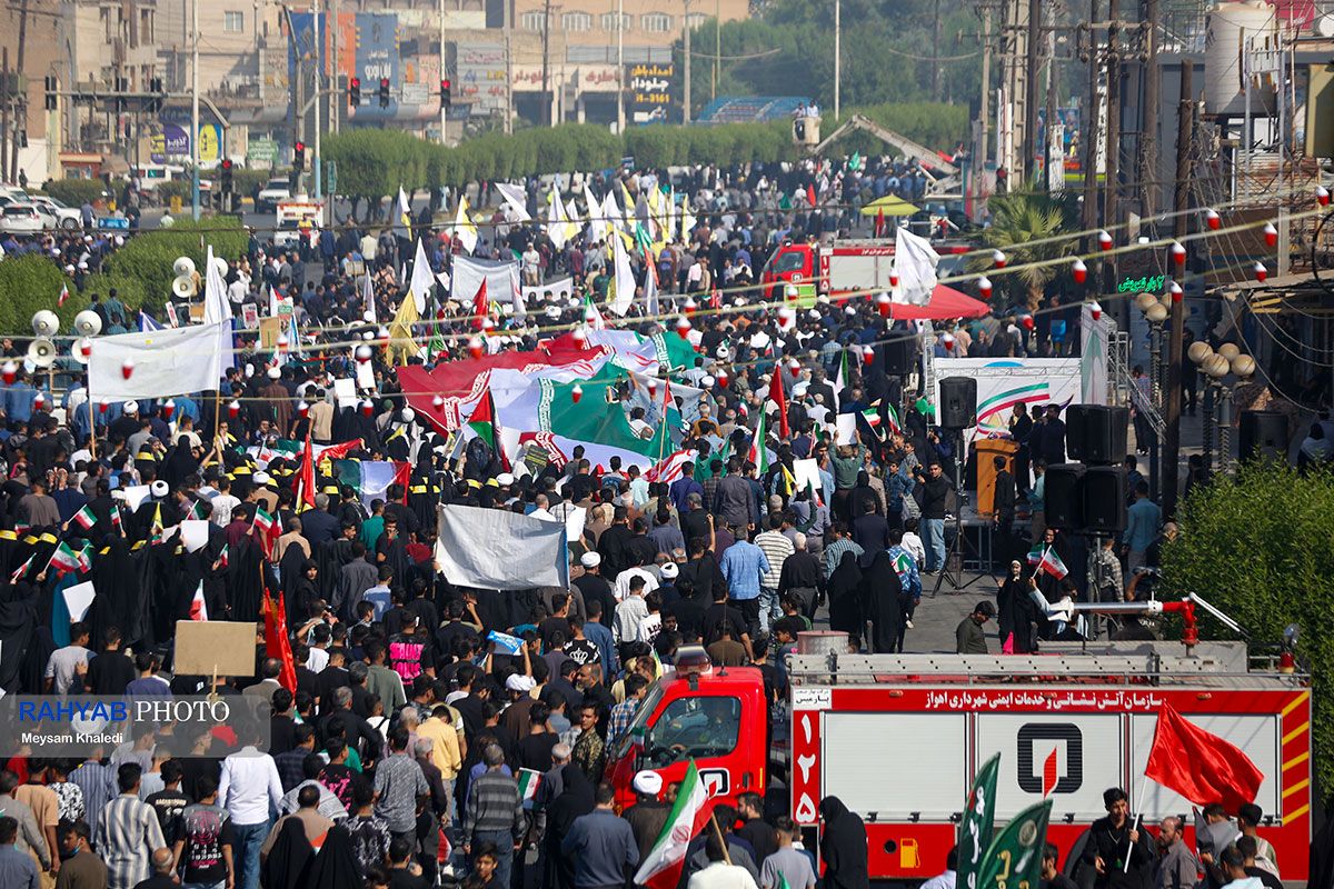 مردم انقلابی و بصیر خوزستان در چهل و هفتمین سالگرد حماسه بزرگ تسخیر لانه جاسوسی آمریکا و روز ملی مبارزه با استکبار جهانی با حضور حماسی خود در راهپیمایی یوم الله ۱۳ آبان ندای مرگ بر آمریکا و مرگ بر اسرائیل را سر دادند.