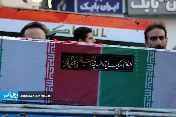 آیین تشییع ۱۴ شهیدگمنام که نشانشان گمنامی و افتخارشان شهادت است، همزمان با سالروز شهادت حضرتزهرا بر دوش مردم ولایتمدار اهواز برگزار شد.