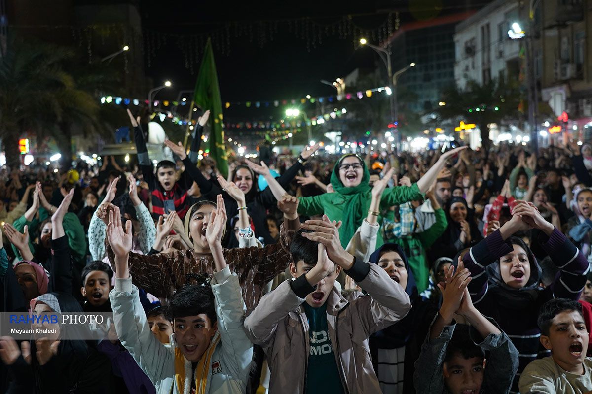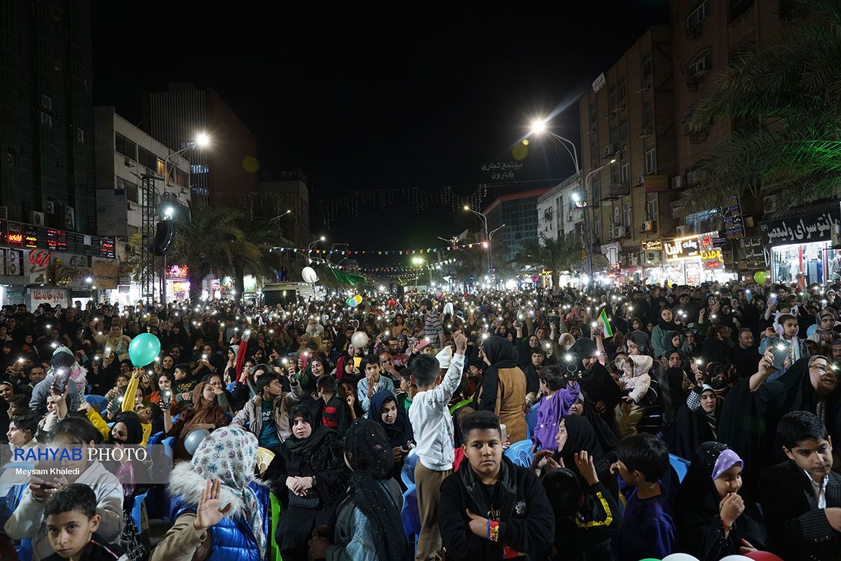جشن بزرگ مهدی جان ایران ویژه فرارسیدن نیمه شعبان، با حضور هزاران نفر از مردم و اقشار مختلف، همزمان با اجرای برنامههای فرهنگی و هنری و پذیرایی موکبهای خدمترسان در اهواز برگزار شد.