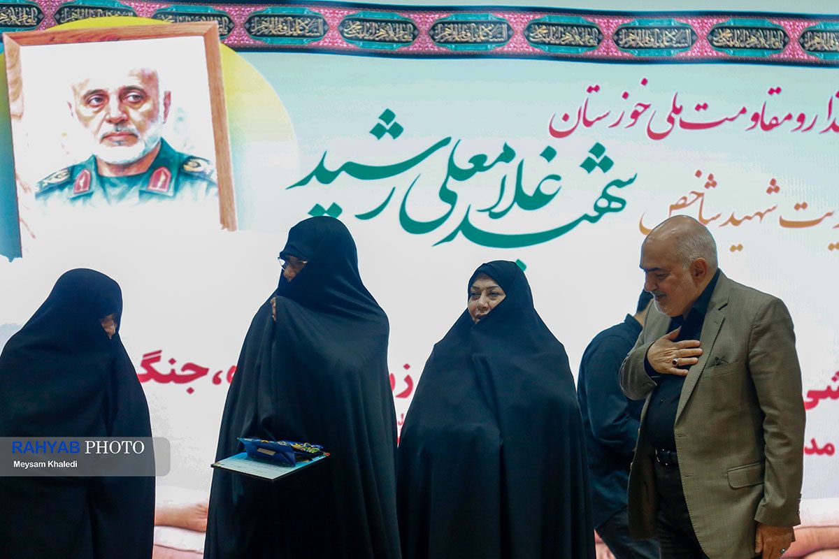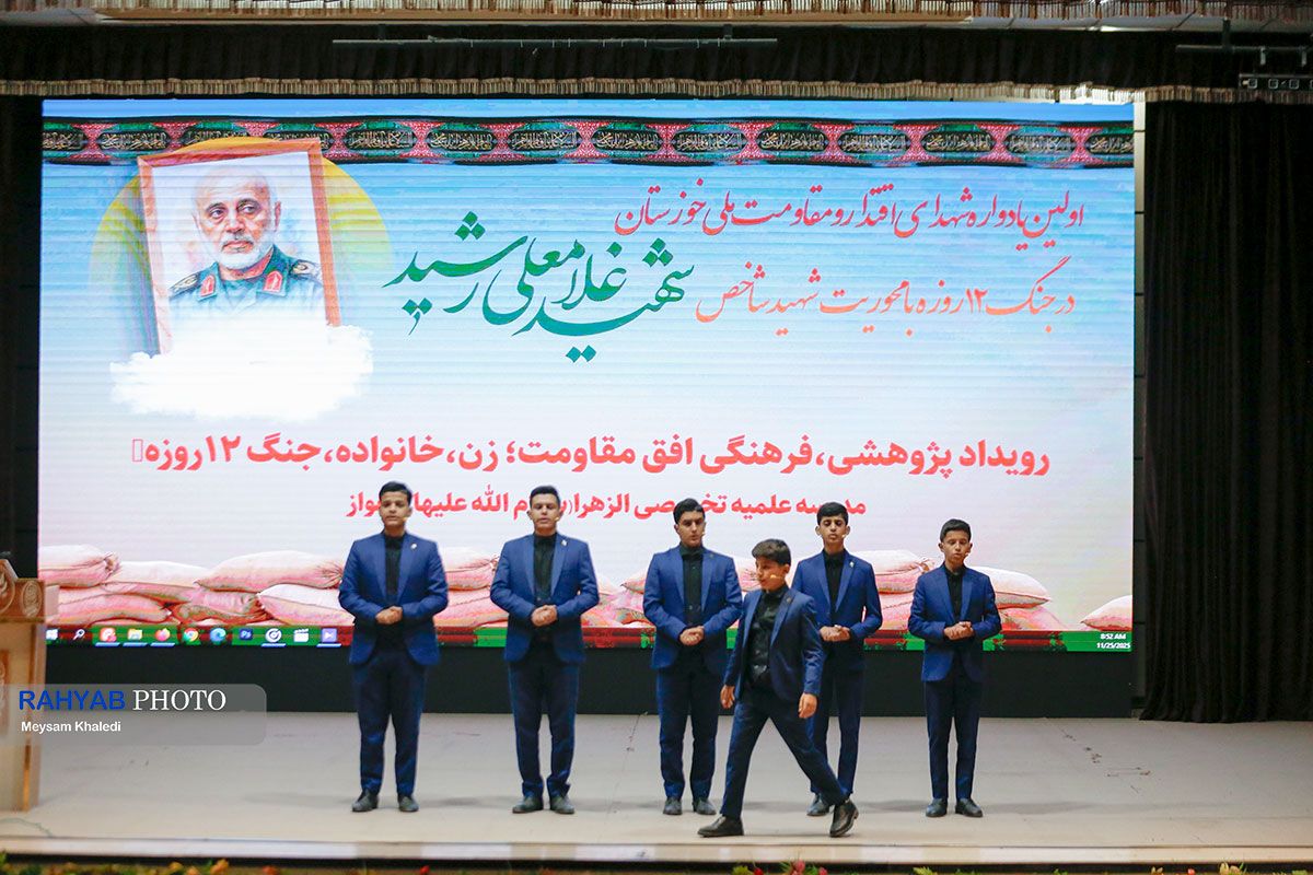 اولین یادواره شهدای اقتدار و مقاومت ملی خوزستان در جنگ ۱۲ روزه با محوریت شهید شاخص سپهبد غلامعلی رشید با حضور همسر شهید، آیتالله جزایری، دختران و بانوان خوزستانی سهشنبه ۴ آذرماه در سرسرای امام خامنهایی اهواز برگزار شد.
